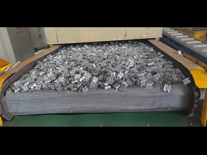 達克羅涂裝生產(chǎn)線涂覆完達克羅涂層冷卻后的成型件,進入冷卻下料段